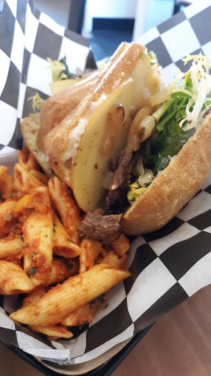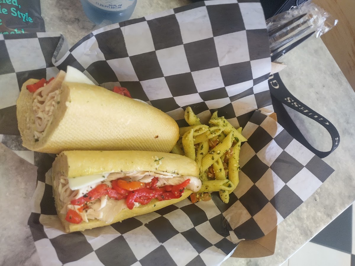 First time trying Gourmet Gang, I asked the girl working the counter what her favorite sandwich was and she said the turkey and provolone. So that's what I got. It was a very fulfilling sub. The small side of pasta that came with it was good too. Service was very caring and attentive. I'm so glad I opted for here instead of Jersey Mike's, the sub tasted clean and fresh! I will continue come back and try other things.